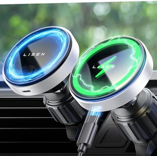 Snap and Charge: Enjoy the convenience of one-click operation for easy phone placement and removal. No need to fret over complex installation steps, keeping you focused on your driving, LISEN magsafe 3 car mount fast charging Suitable for iPhone 15/14/12/13 series and other phones supporting MagSafe charging.