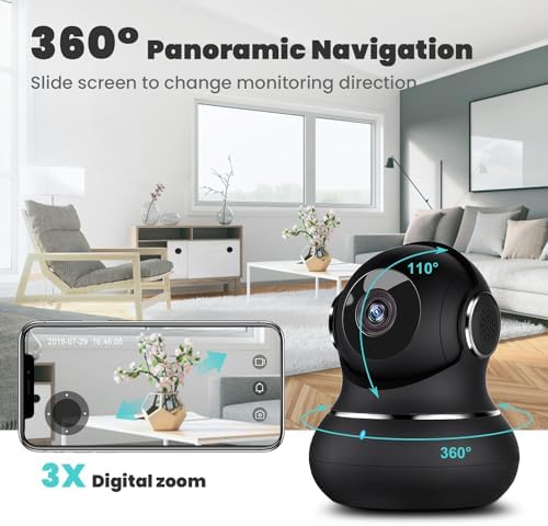 🔔【Motion Detection & Auto Movement Tracking】The cameras for home security indoor adopts Smart Perceive Technology to detect movements. Your phone will get an alert notification to push in time once motion is detected. Just open the APP to have a quick check on what happened, you won’t miss any important movements! The Motion Detection sensibility can be adjusted by yourself. Meanwhile, when you turn on the function of auto movement tracking, the home camera will move as the object moves