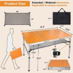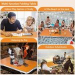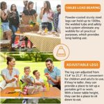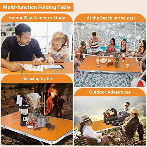 【A TRAVELER’S BEST COMPANION】The folding camping table features a wood-look MDF board table top is waterproof, scratch, and impact-resistant.The aluminum folding table been designed to be very strong, lightweight and ideal for the campsite. A great size to play cards, games or eat meals around the campfire. The legs fold away to make this metal folding table a compact size that is easy to carry and transport. A must have table for regular campers and outdoor enthusiasts!