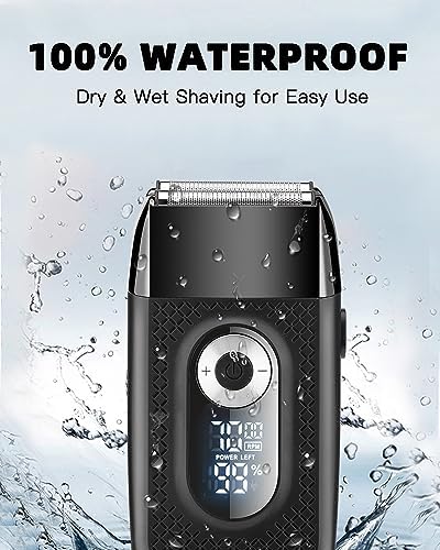Long Running Time & Battery Powered – This electric razor can be used corded and cordless. A full charge takes only 2 hrs and last 120mins ultra-long runtime – that’s about 23 times. The remaining power is displayed in numeric clearly, and USB charging make it convenient to recharge.