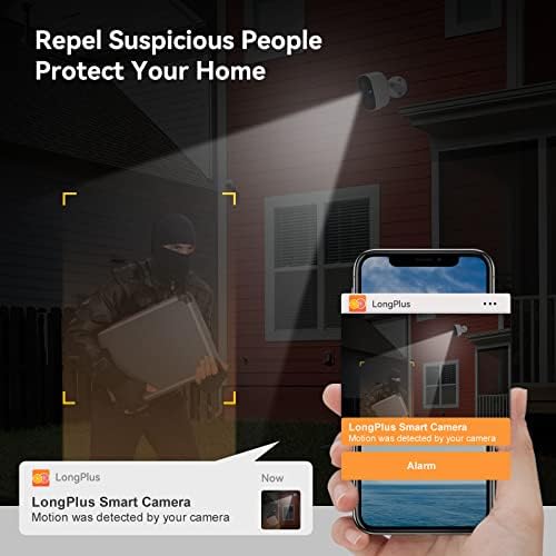 🎥【1080P Full HD Security Camera & Color Night Vision】The IR light automatically turns on night vision, 1920*1080P Full HD image quality and dual light source for night vision mode when ambient light is low to ensure you are visible in the dark. LongPlus wireless outdoor cameras for home security maintains a wide viewing angle of 124 degrees, and provides 2-way audio calls, allowing you to easily hold the conversation.