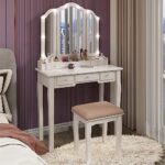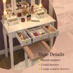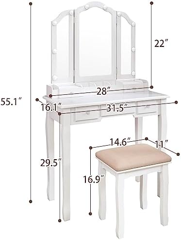 Large storage space for vanity with lights: The vanity desk with mirror and lights is for you to put various cosmetics,perfumes, makeup brushes, etc. to keep your makeup neatly organized.