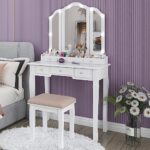 Application of the makeup vanity with drawers: This makeup desk is a good birthday gift or other festival gift for your girl friend or other friends, your daugther, your granddaughter and so on.