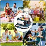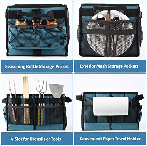 Large Capacity: The overall dimensions of bbq caddy are approximately 15.7″L x 11.8″W x 10.2″H, the large capacity and strong load-bearing to hold drinks, condiments, picnic cups, cutlery, barbecue tools, paper towels, etc. It can hold everything you need for your barbecue, let you enjoy a delicious outdoor party