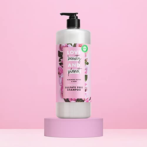 Surround your hair with the juicy freshness of Rose Petals, sourced ethically from the Rose Valley of Bulgaria. With Love Beauty and Planet Blooming Color Murumuru Butter & Rose Paraben Free Shampoo and Conditioner for Color Treated Hair, you will keep your hair color vibrant and nourished! Our color safe shampoo and conditioner are made with plant-based cleansers and detanglers, and infused with natural coconut oil for hair. How to use this sulfate-free shampoo and conditioner. Start with the Love Beauty and Planet Blooming Color Shampoo for color-treated hair. Simply squeeze, lather and rinse. After shampooing, spread Blooming Color Vegan Conditioner through your gorgeous wet locks. Remember to go easy on the tap. Avoid the roots, rinse. On days when your hair needs a “pick me up” after using this color safe shampoo and conditioner collection, try our Blooming Strength and Shine 2-Minute Miracle Masque. Don’t stop with beautiful hair from this conditioner for color-treated hair. Envelop your skin as well in our Love Beauty and Planet Murumuru Butter & Rose Bountiful Moisture Body Wash to nourish dry skin, leaving it petal-soft. And, if your skin craves a scrub, try our Love Beauty and Planet Sugar & Rose Peace and Glow Creamy Body Scrub. At Love Beauty and Planet, we are committed to small acts of love that make you and our planet a little more beautiful, every day. Our goal is a carbon footprint so small, it’s as if we weren’t even here. We started our journey by loading our beauty products with goodness. Every one of our shampoo and hair conditioner bottles is made from 100% recycled materials and is recyclable. We are starting a beautiful movement.