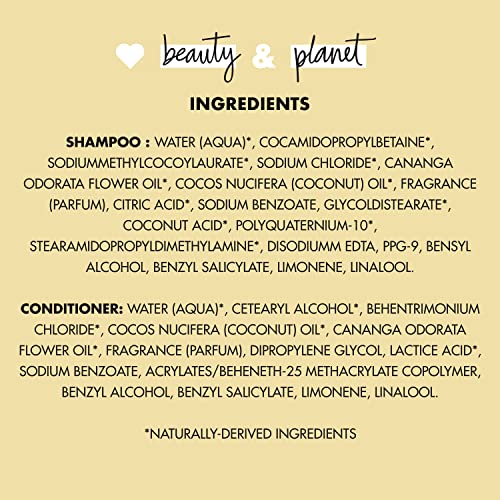 Repair damaged hair with the Love Beauty and Planet Sulfate-Free Hope and Repair Shampoo and Conditioner System! Our Hair Repair system treatment for damaged hair is made with plant-based cleansers and softeners, and is infused with coconut oil for hair. Let your hair bask in the early morning freshness of Ylang Ylang, sourced ethically from the island of Mohéli in the Comoros. How to use? Simply squeeze, lather and rinse. Go easy on the tap! After shampooing, spread the Hope and Repair Conditioner through your gorgeous wet locks. Avoid the roots, rinse. Don’t stop with beautiful hair. Bathe your skin with our Love Beauty and Planet Coconut & Ylang Ylang Tropical Hydration Body Wash. At Love Beauty and Planet, our goal is to make you more beautiful and give a little love to the planet. We are committed to small acts of love for the planet. Our goal is a carbon footprint so small it’s like we weren’t even here. We started our journey by loading our hair care and beauty products with goodness. Every one of our hair care products bottles is made from 100% recycled materials and is recyclable. Our caps and pumps aren’t made from recycled plastics yet, but we’re working on it. Our shampoos and conditioners are also sulfate free, paraben free, silicone free, dye-free, cruelty-free, phthalate free, and made with naturally derived ingredients. Love Beauty and Planet Hope and Repair Sulfate-Free Shampoo and Conditioner have been certified as Vegan. We are starting a beautiful movement. Are you in? To learn more about our system for damaged hair, damaged hair treatment, and our other hair care vegan products, visit our website.