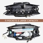【Multi-pocket Design】The multi-pocket design of the laptop bag keeps your belongings organized. It has a separate padded laptop compartment. an iPad pocket, a middle zipper pocket, an internal side zipper pocket, two large opening compartments, two small opening pockets, two pen pockets and an outer zipper pocket; 11 total pockets.