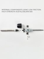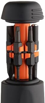 Handle conveniently stores 12 22mm bits and 6 longer bits up to 42mm