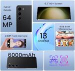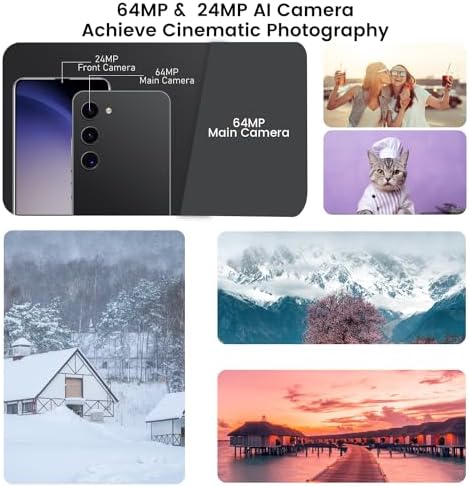 📷【64MP+24MP Camera+AI Face Fingerprint Unlocked】The Android phone comes with a 64MP main camera with enhanced image processing algorithms that make every photo exceptionally clear and detailed without being eye-catching or lifelike. The 24MP front camera further enhances the clarity and delicacy of facial features, helping you take creative selfies with accurate colors. Get your phone unlocked upon recognizing your face with AI face unlock.