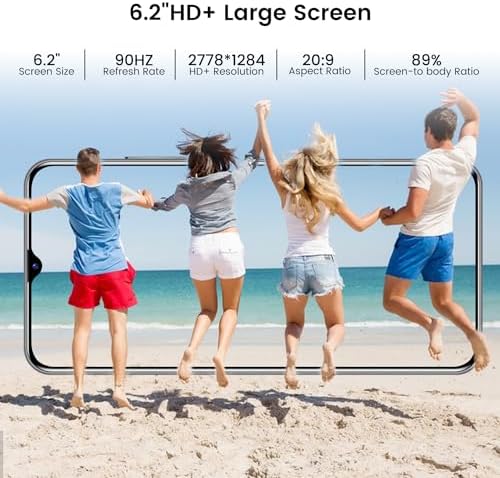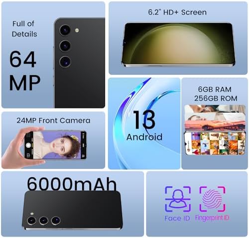 luckeu C23 5G Unlocked Cell Phone, Android 13 Smartphone 6.2 Inch FHD+ 120Hz Screen 6000mAh Battery, 6GB+256GB Octa-Core, 64MP/24MP AI Camera Mobile Phone, Dual SIM with GPS/Face ID