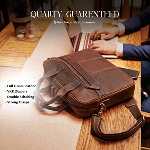 QUALITY CRAFTSMANSHIP – The executive leather briefcase for men is constructed with fine materials and expert craftsmanship. YKK zippers, solid antique brass hardware, precision stitching with heavy bonded thread, and a superb upgraded internal lining design. An office bag for men that will withstand many years of commuting.