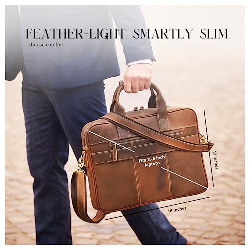 PROTECT YOUR STUFF – This leather computer bag is for men. To ensure your laptop is safe, our men’s leather bag includes a thick protection pocket in the laptop compartment. Business bags for men should include protection for all your gadgets, and Luxorro’s laptop bag offers the best protection.