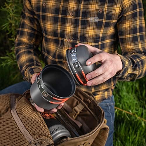 The M-Tac outdoor camping pan hiking cookware is an indispensable tool for any outdoor activity or trip. It is a set of 2 Pcs that makes this compact camping cookware ideal for couples or friends of two to cook when traveling. The pan and pot have folding handles covered with heat-resistant plastic. As handles do not heat from the fire, you can hold dishes comfortably during cooking. Also, you can use the pan as a lid while cooking.