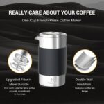 3.WON’T BURN YOUR HANDS – Double wall design keeps your coffee hot while the silicone rubber case of french press helps to prevent your hand from burning and avoids slipping. Instead of handle, saving space and comfortable to grip.