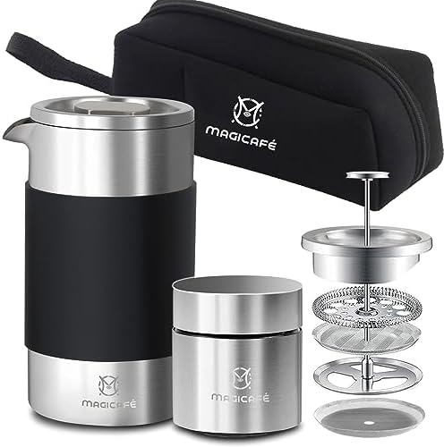 2.PREMIUM MATERIAL AND FINE CRAFTSMANSHIP – Our coffee press is made of high quality 18/8 304 stainless steel which is durable and rust proof. Not like glass, you never worry to break. The bonus travel coffee container is also made of 304 stainless steel and glass.