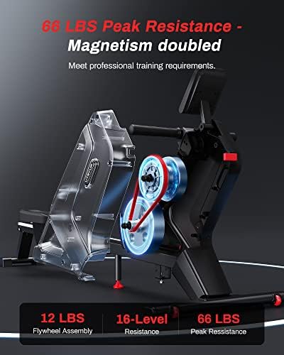 Professional Rowing Machine: Our rowing machine is equipped with a 12-lb flywheel component that provides a peak resistance of 66 pounds, which is double the resistance of regular rowing machines, catering to your explosive and strength training needs. With 16 levels of resistance options, both beginners and professionals can achieve effective workouts.
