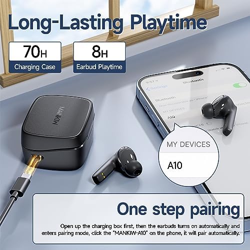 Custom Comfort – Choose from 3 types of ear caps for the perfect fit with your Bluetooth wireless earbuds. The non-slip, waterproof and sweatproof design ensures that you will always be able to use your wireless Bluetooth earbuds properly. Wireless Bluetooth earbuds IPX6 waterproof means a little rain won’t ruin your day. Enjoy your favorite music, rain or shine, with Mankiw true wireless Bluetooth earbuds.