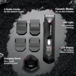 LCD Display & Adjustable LED Light: Stay in control with the digital remaining-charge readout. The built-in LED light whether it’s on or off, you control it to ensure optimal visibility for precise grooming.