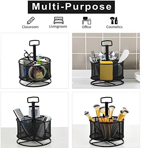 ✎【Multipurpose Desktop Organizer】: This rotating storage organizer is perfect for pencils ,cosmetics, bathroom necessities, toiletries and even kitchen utensils.Try it in your craft room, playroom, laundry/utility room and even inside bathroom cabinets or under the sink; Store extra office supplies like painting pens, correction tape,scissors ,TV Remote and more; Even headphones or a charger will no longer be lying around in the future! Maximize your vertical space and keep your desk clear.