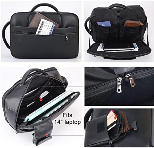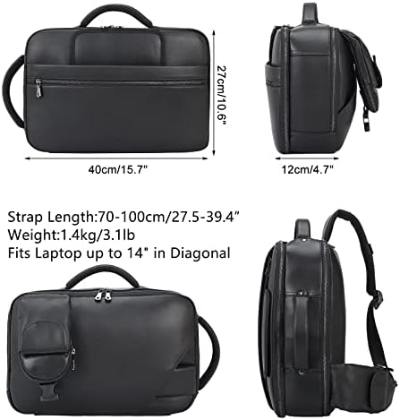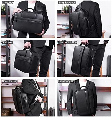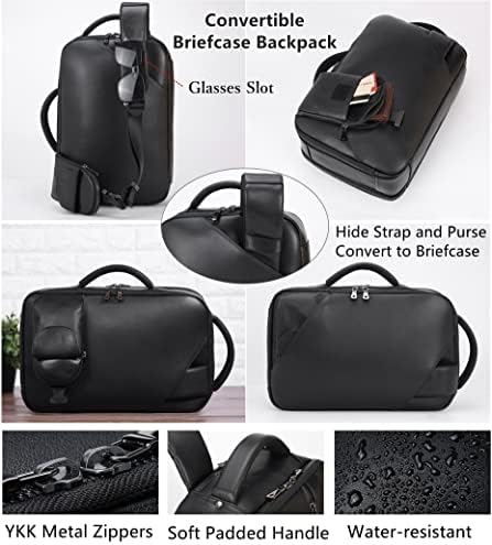 【Convertible Briefcase Backpack】 The shoulder strap can be hidden. A small zipper purse on the shoulder strap also can be hidden, which can anti theft when it holds your phone or cards. The bag can be carried in 6 carry ways as business briefcase, sling backpack bag, crossbody front chest bag, single shoulder bag, or top handle bag. It can be a small leather travel bags for men, small attch case for business meeting, daily daypack for work, 14 inch computer laptop case bag.