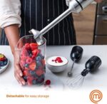 MasterChef Immersion Blender Handheld with Electric Whisk & Milk Frother Attachments, Hand Held Stainless Steel Stick Emulsifier for Making Baby Food, Soup, Puree, Cake, Cappuccino, Latte etc, 400W