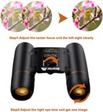 【Simple Operation】 Power Binoculars Adjust by Smooth center-focus knob and right eye lens ,easy focus even for kids. Adjustable width for different size faces.