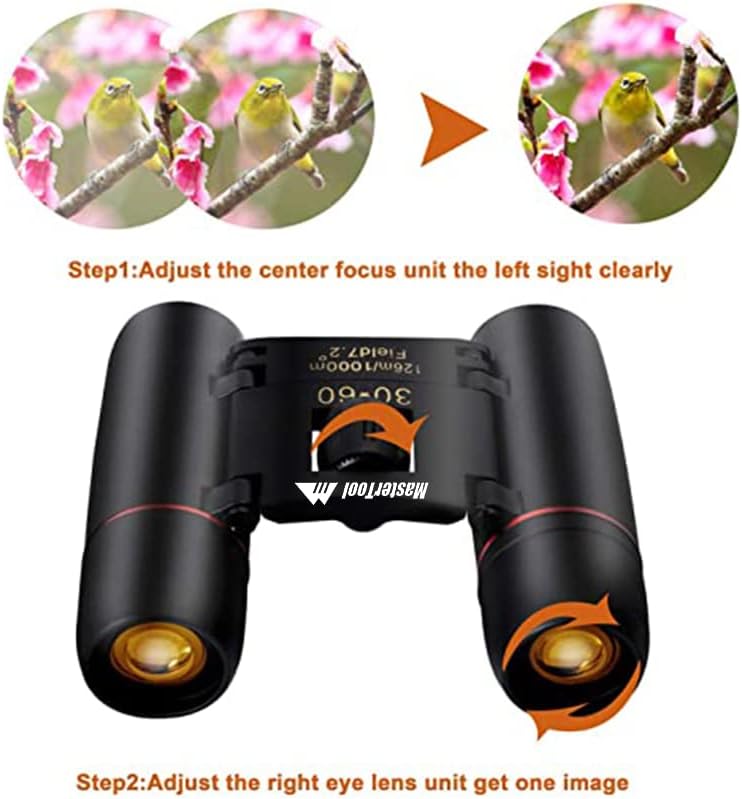 Home Sports & Outdoor Binoculars MasterTool – 30 x 60 Small Binoculars Compact for Adults Kids, Mini Binocular for Bird Watching Traveling Sightseeing, Lightweight Pocket Folding Binoculars for Concert Theater Opera,Black