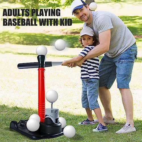 MEIJIABA T Ball Sets for Kids 3-5, Tball Set for Kids 5-8, Tee Ball Set for Toddlers 1-3, Toddler Baseball Bat Set, Boys Outdoor Sports Pitching Launcher Machine Toys