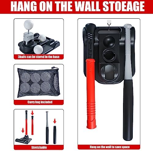 Easy to carry, the baseball set is retractable in length and comes with a storage bag for your kid to finish playing and talk about storing 6 baseballs neatly. The baseball base can be hung on the wall for easy storage in small spaces indoors or outdoors.