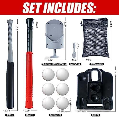 Includes 6 baseballs, 1 baseball bat, 1 base, 1 bag