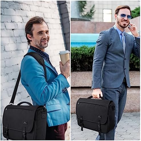 🎁Anti-theft Design & Stylish Appearance: Black laptop briefcase is designed with 2 strong buckles on the flap which is secure for all your valuables. The zippered pocket on back is close to user, ensure that valuables will not be easily taken away by thieves. Most importantly, this front buckle design makes the personalized messenger bag always fixed in a good shape, even if it contains a lot of things, it looks more fashionable than other ordinary computer bags