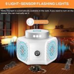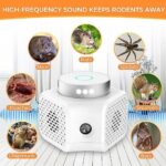 The rodent repellent is equipped with 3 speakers, which emit different sounds, causing strong auditory pressure on rodents, and 9 powerful LED strobe lights aim at their eyesight, creating a harsh living environment for them and preventing them from entering the protected area, like the attic, garage, barn, or RV.