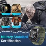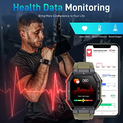 【24 SPORTS MODES & FITNESS TRACKERS】- Bassizo step counter watch supports multiple sports modes, which include Walking, running, basketball, football, cycling, rope skipping, mountain climbing, etc. The reference data of the exercise will be uploaded to the APP, set a goal for your exercise, and work hard to achieve it! The military smartwatch also provides you with more useful functions such as weather forecasts, alarm clocks, camera controllers, music control, sedentary reminder, and more.