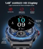 Home Electronics Military Smart Watch for Men with Text and Call, 1.43” AMOLED Fitness Tracker Watch 129+Sports Modes/Blood Pressure/SpO2/Heart Rate Monitor/IP68 Waterproof, Outdoors Sport Smartwatch for Android iOS
