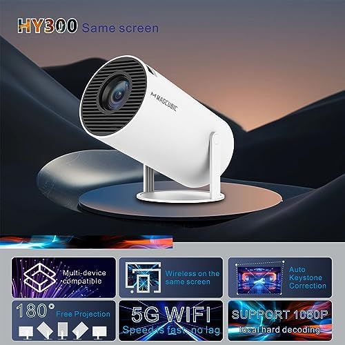【2.4/5G WiFi & BT 5.0 Video Projector】Magcubic HY300 Portable Projector equipped with latest 5G dual band WiFi, with higher transmission rate and lower latency, a few seconds will be wirelessly synchronized to get a big screen. Built-in BT 5.0 chip, the projector allows you to connect the ideal Bluetooth speaker/headphone at any time and save every detail of the sound effect to offer you different sound scenes. (Not support to connect smart phone, laptop’s bluetooth)