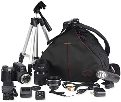 The MN24Z Digital Camera shoots 33MP pictures and 1080p Full HD video. Featuring a compact size, 8X digital zoom lens, 3.0” LCD and intelligent scene modes make shooting the perfect shot easy. Swap out the standard lens with the included 24X telephoto lens or the included wide-angle lens to capture the perfect shot in any setting. Included Accessories: Standard Lens, 0.5x Wide-Angle Lens, 16x-24x Tele Zoom Lens, LED Spotlight, Remote Control, Lithium-Ion Battery, Battery Charger, AC Adaptor, Neck Strap, Lens Cap, 32GB Memory Card, 52″ Tripod, USB Cable, A/V Cable, Instruction Manual, Carrying Bag