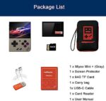 Package Contains: 1 x Miyoo Mini Plus Game Console(Gray), 1 x Screen Protector, 1 x 64G TF Card, 1 x Carry bag, 1 x User Manual, 1x USB-C Charging Cable, 1 x Card Reader