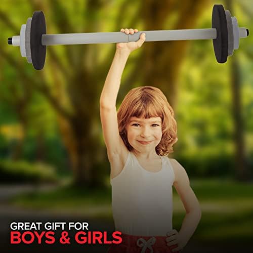 Easy to Assemble: All you have to do is slide a large black disc into either side of the bar. Then slide in the medium-sized gray disc, and finally the small gray disc. Repeat on the other side. Our barbells make great gifts for boys and girls.