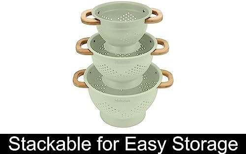 Space-Saving Stackable Design: These colanders are stackable, making storage a breeze, and their compact design ensures they won’t take up unnecessary space in your kitchen cabinets.