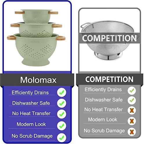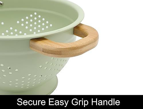 Cool Heat-Resistant Bamboo Handles: The thoughtfully crafted bamboo handles provide a smooth and natural feel, ensuring easy maneuverability while pouring, shaking, or tossing ingredients in the colander, reducing strain on your hands and wrists.