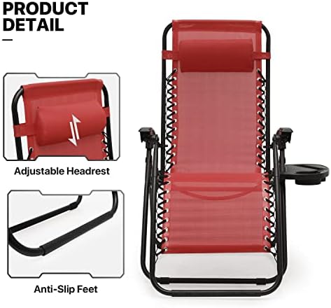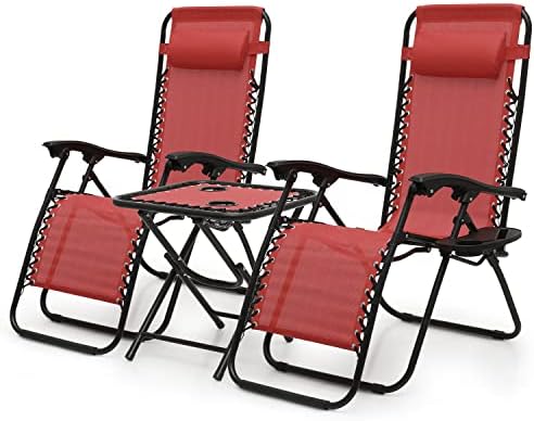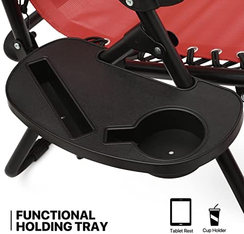 Detachable Tray – These zero gravity chairs are equipped with durable plastic accessory tray providing perfect place to set drinks, magazines, phones/tablet’s, or other small items for convenient accessibility. And the zero gravity patio lounge chairs set, includes 2 chairs and 1 folding table, suitable for holding drinks and more food during your leisure time.