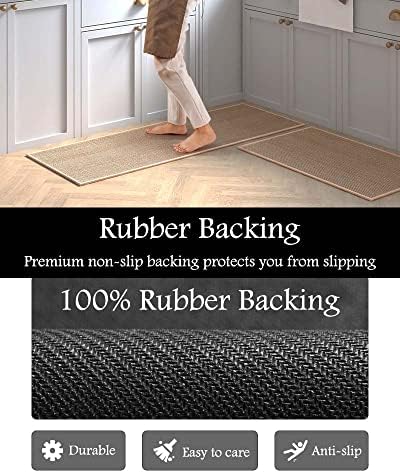 Multi-purpose Floor Mat: Kitchen rug is a great way to keep your kitchen clean and tidy. Great water absorption & stain-resistant properties protect the floor from oil, dampness, sauces or food particles. Place the kitchen mat set in your kitchen to cover up cold tiles and add extra decor to your home!