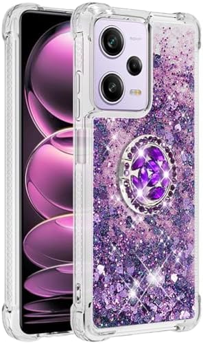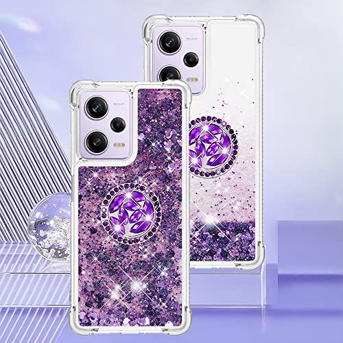 Monwutong Slim Fit Case for Redmi Note 12 Pro 5G,Case for Xiaomi Poco X5 Pro,Soft TPU Glitter Liquid Quicksand Effect Silicone Ring Kickstand Cover for Poco X5 Pro/Note 12 Pro,WTZH Purple