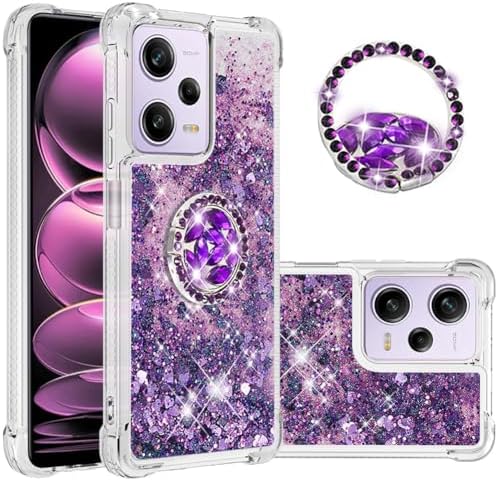 Home Electronics Smartphone Monwutong Slim Fit Case for Redmi Note 12 Pro 5G,Case for Xiaomi Poco X5 Pro,Soft TPU Glitter Liquid Quicksand Effect Silicone Ring Kickstand Cover for Poco X5 Pro/Note 12 Pro,WTZH Purple