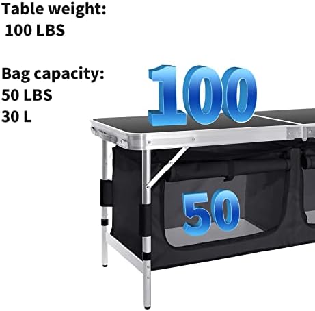 Great foldable outdoor table – 47.2*18.5 inch spacious desktop for up to 4-6 people;60L Oxford storage (30L each drawer) bag could hold two dazzles of beer. This portable folding table is ideal for camping, hiking, traveling, fishing, barbecues, picnics, beaches, and travel. It can be used as an outdoor table, camping table, coffee table, beach table, barbecue table