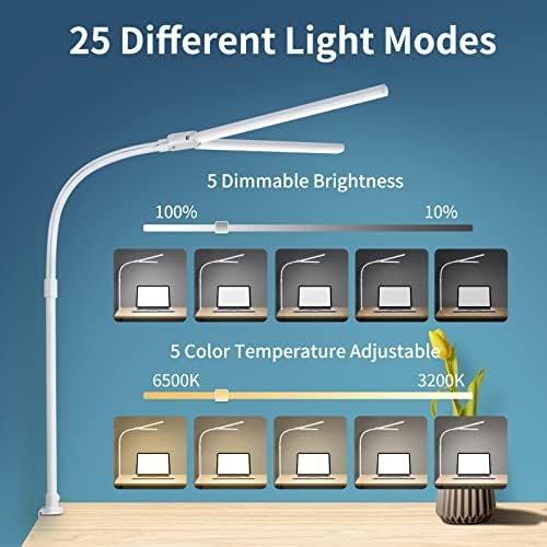 Multi Lighting Modes: When you press the cycle button, the color temperature changes from cool to warm. The plus and minus button is in charge of 5 brightness levels, the different lighting point choices for ideal illumination while working, reading, crafting, painting, sewing and so on