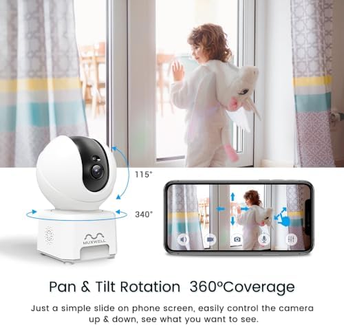 MUXWELL 2.5K/4MP Indoor Wireless Home Security Camera 360° View Pan/Tilt;