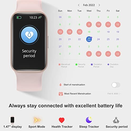 Sleep Tracker & Smart Reminder: Monitor the quality of your sleep each night through the APP and on your wrist, displaying time asleep, awake time, deep sleep, and restlessness. The smart reminder feature keeps you notified of incoming calls, texts, SNS updates, and also reminds you of sedentary periods and staying hydrated. Additionally, it supports women’s menstrual tracking.