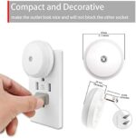 Plug night light, compact size to fit the outlet and leave the rest for other devices. Low light diffused light ring, warm and glow.