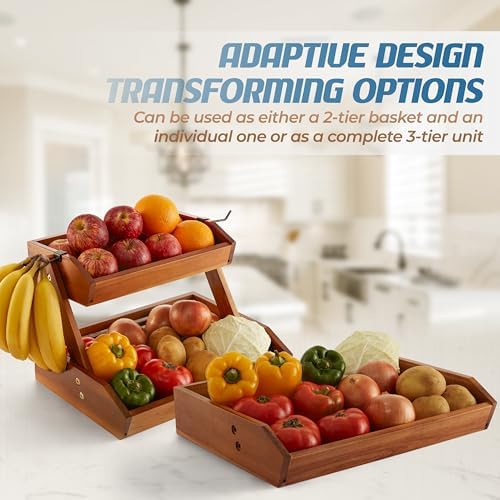 ✔️ SPACIOUS HOME STORAGE DISPLAY: Each level of this large wooden fruit basket can hold more than a dozen fruits and vegetables. Once your kitchen is organized, healthy cooking will be a breeze!